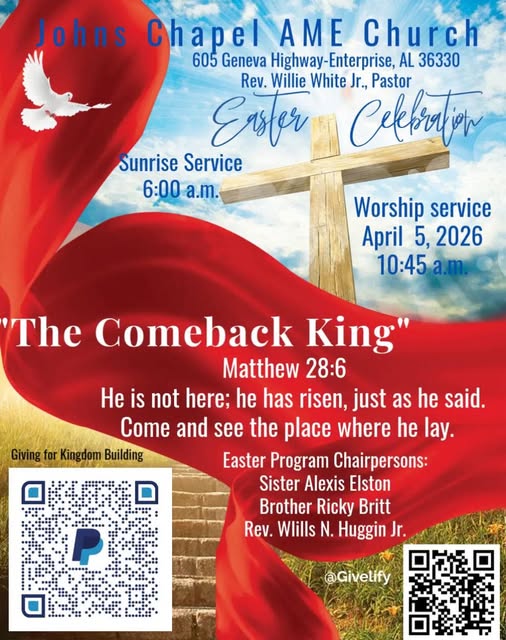 Chapel AME Church; PAY PAL: Johns Chapel African Methodist Episcopal Church.
